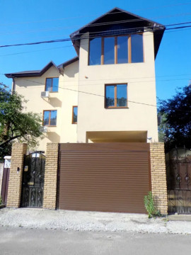 Продаж будинку 400 м. кв. виходом на ділянку та вікнами. Перший поверх - передпокій із вбудованими меблями, велика гостьова з каміном та укомплектованою кухнею. Проміжний поверх – двоповерхова кімната. Другий поверх - дві дитячі кімнати, сан.вузол, спальна кімната для дорослих з сан.вузлом, вбиральня з вбудованими меблями. Цоколь – з гідро та теплоізоляцією стін та підлог, стіни – глиняна цегла з утепленням, перекриття монолітні, основа даху – металевий каркас, покрівля – французька бітумна черепиця, вікна – бельгійські алюмінієві Рейнарс, у всіх спальнях кондиціонери Дайкін. Внутрішнє оздоблення вищої якості – підлога плиткова з водяним підігрівом та паркет, стіни та стелі – штукатурка, шпаклівка, фарбування. Комунікації всі міські – газ, вода, каналізація з усіх поверхів (включаючи цоколь), для інтернету заведено оптиковолоконний кабель, електропостачання від своєї підстанції (є резервні варіанти), охоронна сигналізація та система відеоспостереження. Стоянка для машин внутрішня, ворота автоматичні. Будинок розташований у самому Києві, логістично зручному тихому місці у верхній частині масиву між багатовіковими дубами – чисте повітря та майже не їздять машини. навколо кілька парків. Немає сусідів вікна – у вікна. ще