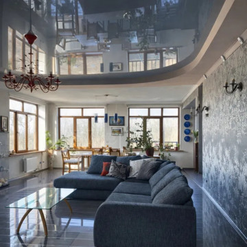 Дизайн интерьера оформлен в ближневосточном стиле. Высота потолка в каминной зоне центральной части дома 7 метров.